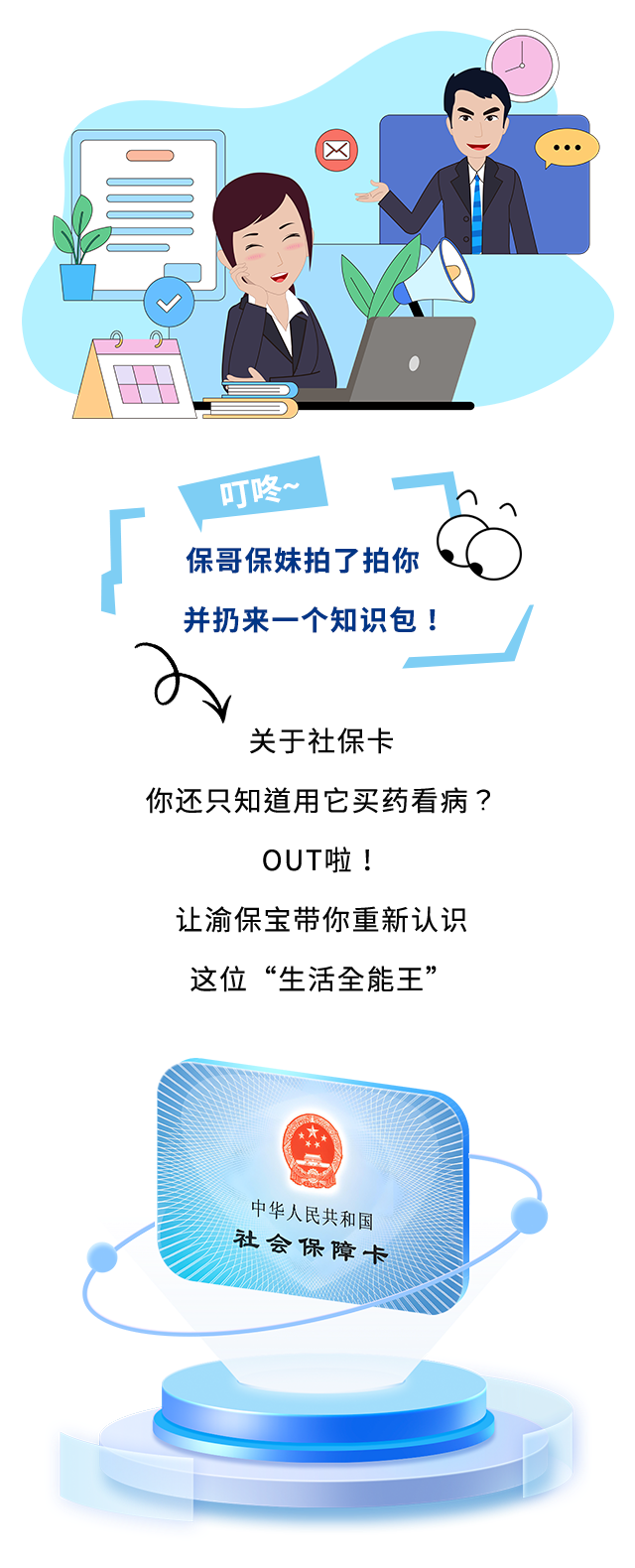 社保卡是除了身份证以外唯一使用“国徽”标识的卡片,它其实就是持卡人的“第二张身份证”。目前,电子社保卡已实现与“渝快码”互通互认,群众可在全市 大厅通过电子社保卡办理相关业务,还能在人社 大厅办理全部业务。