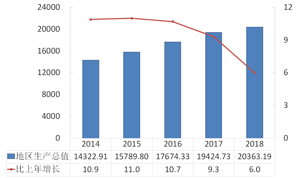 图1 2014-2018年地区生产总值及其增长速度