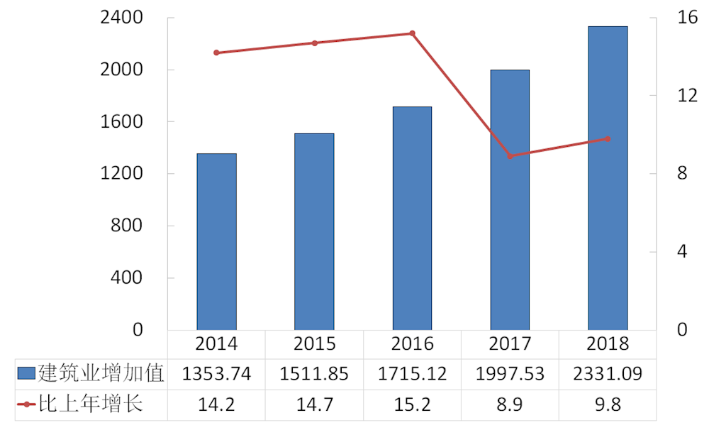 图5 2014-2018年建筑业增加值及其增长速度