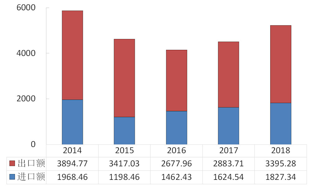 图7 2014-2018年货物进出口总额