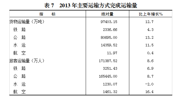 全年内河港口完成货物吞吐量13675.89万吨,比上年增长9.4%。空港完成旅客吞吐量2568.64万人,增长14.6%;空港完成货物吞吐量28.20万吨,增长4.3%。国际标准集装箱吞吐量98.80万标准箱,增长13.8%。