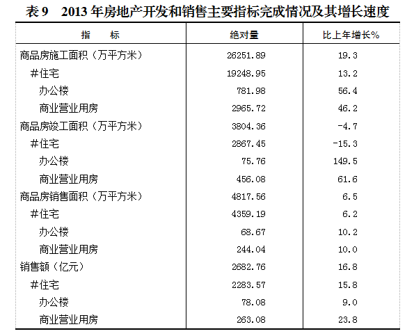 全年商品房施工面积26251.89万平方米,比上年增长19.3%;竣工面积3804.36万平方米,下降4.7%。商品房销售面积4817.56万平方米,增长6.5%。其中,住宅销售面积4359.19万平方米,增长6.2%。商品房销售额2682.76亿元,增长16.8%。