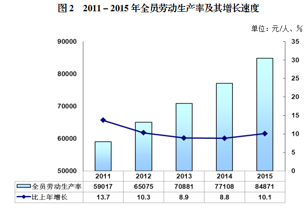 全年全员劳动生产率为84871元/人,比上年提高10.1% 。