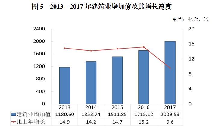 全年实现建筑业增加值2009.53亿元,比上年增长9.6%。建筑业总产值达7608.00亿元,增长8.1%。全市具有资质等级的总承包和专业承包建筑业企业实现利润369.32亿元,增长11.9%。